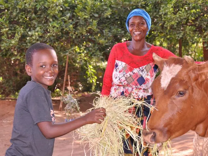 The family also received a cow and sheep from World Vision Tanzania from which she milks twelve liters of milk a day. She says “I sell ten liters at ten thousand shilling s (US$5) and use two liters with my family; I also use the cow dang to fertilize my farm.”